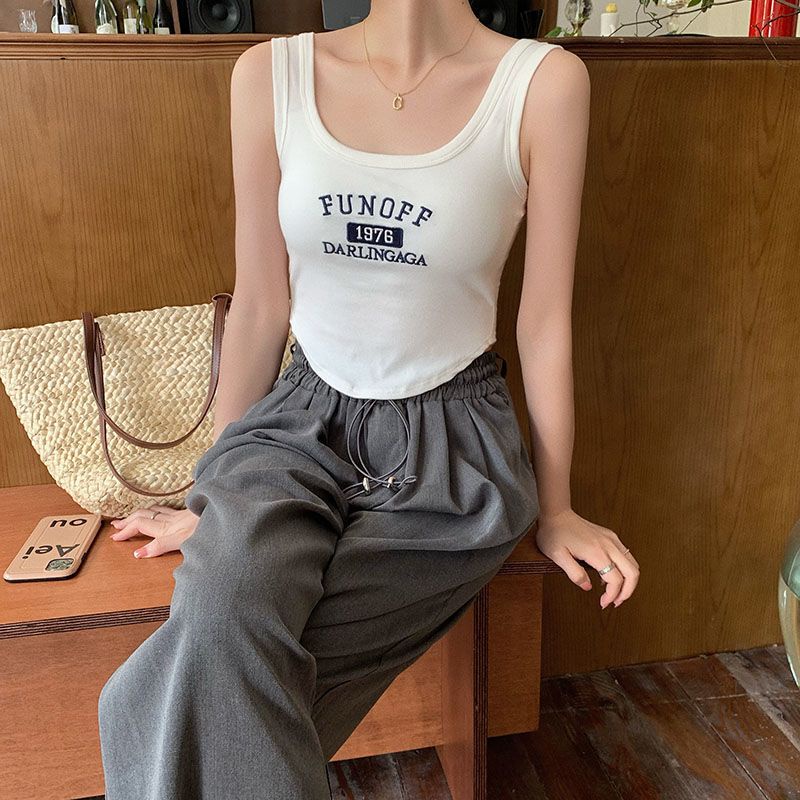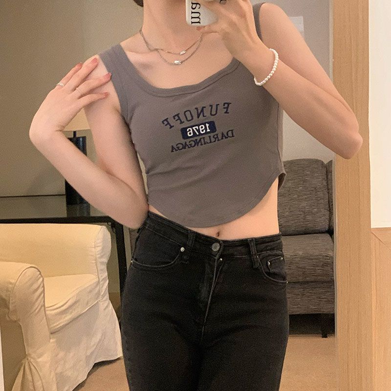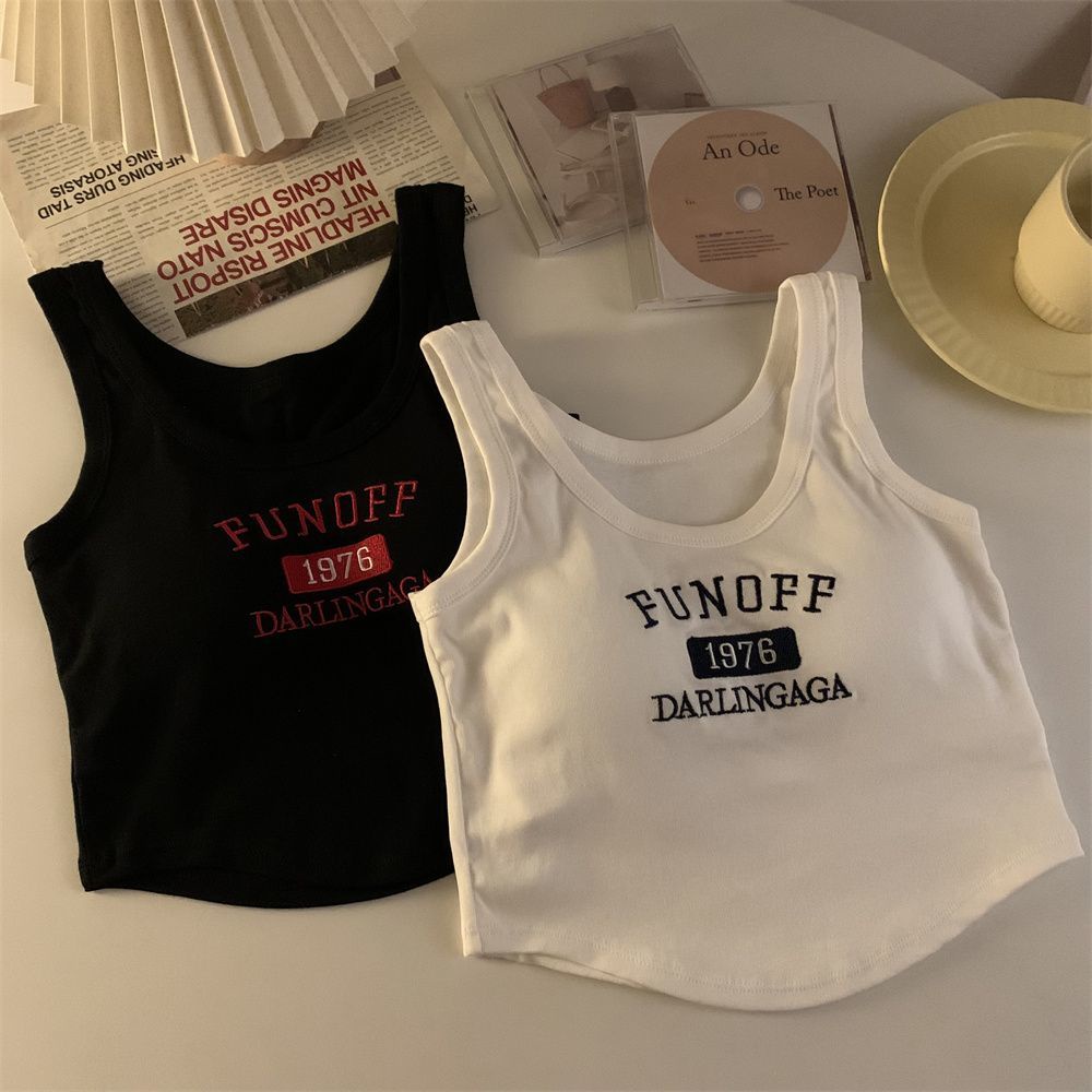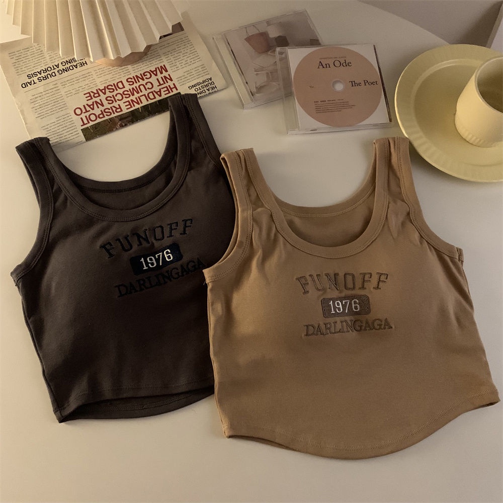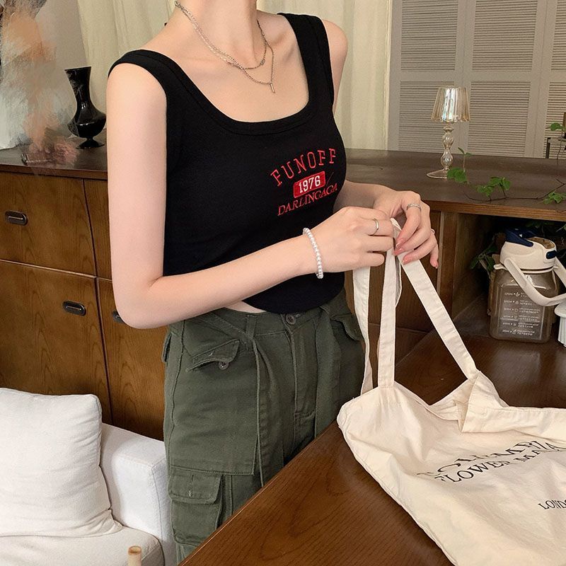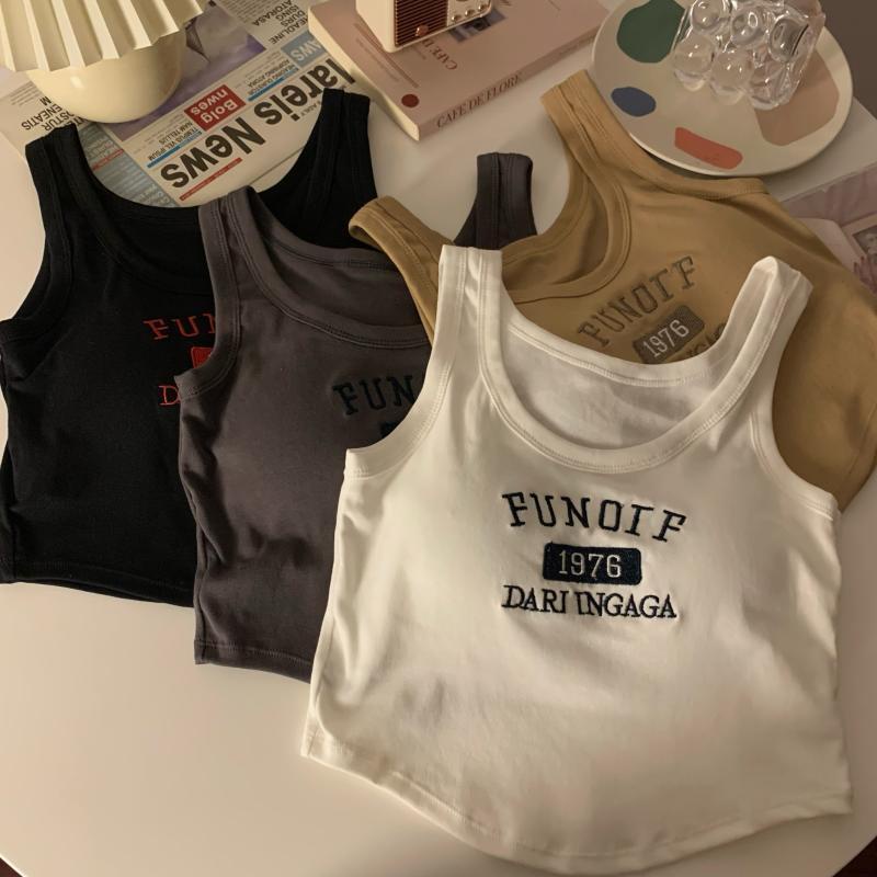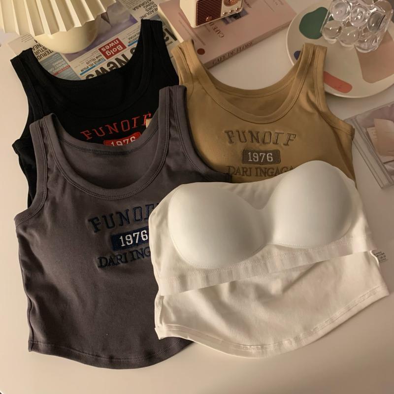 【限時特價】複古刺繡內搭弔帶帶胸墊背心夏季新款修身辣妹美背抹胸打底上衣女背心 無袖上衣 辣妹風 肩帶小07