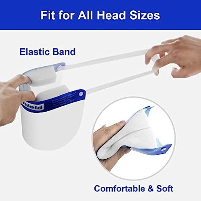 【HD Transparent & Anti-fog】The safety face shield is features with high light transmission which is up to 99.8%, and it's really fog resistant. It's perfect to indoors and outdoors use to protect you to the greatest extent without eyesight matters(Note: Please remove the protective cover oncover on both sides of the mask before use).