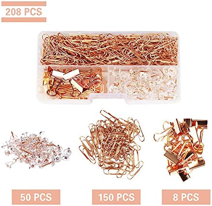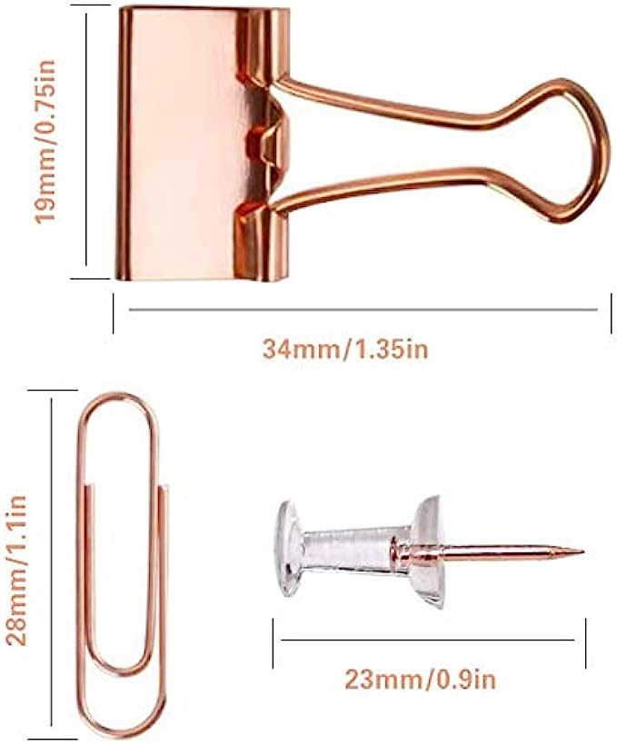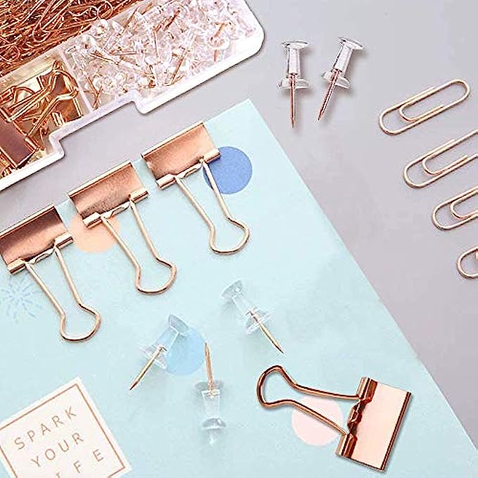 【Rose Gold Stylish】 This set includes rose gold push pins,paper clips and binder clips. The luxury rose gold color wichin is a new fashion will make your office sleek, modern, and confident.