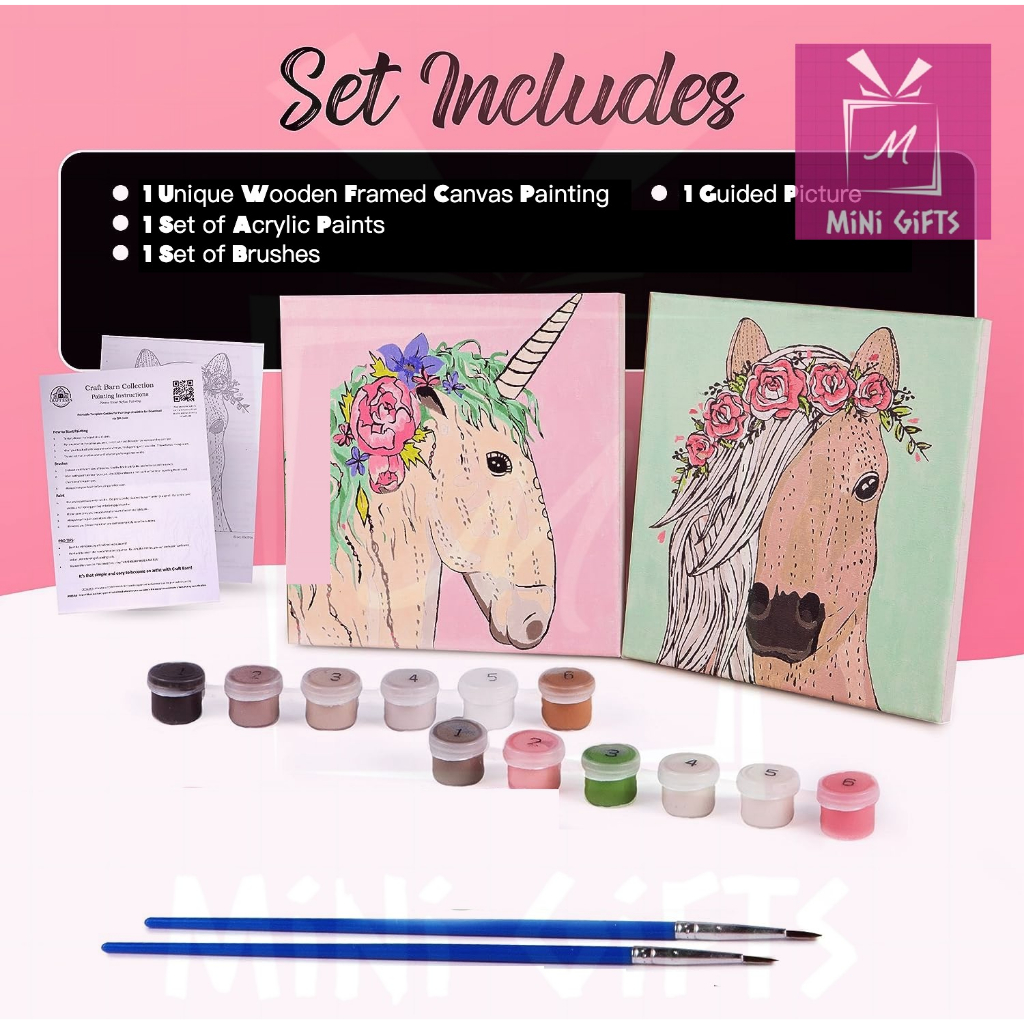 Quality:Came with brushes, paint and screws for hanging up. Good canvas quality. Value For Money:Worth the price paid. although was shocked at min. of 16pcs, I feel it's worth it. bought for my girls to pass their time and lessen screen time.
