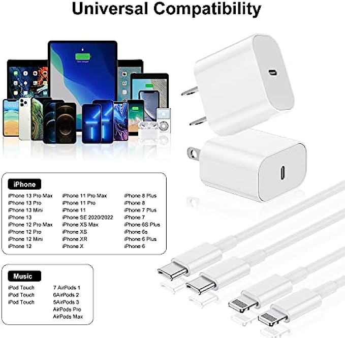 ?【One Charger, Lifetime Service】You will get 2Pack 20W PD 3.0 Applicable Apple Charger Plug and 10FT MFi Certified USB C to Lightning Cable, 2-Years worry-free refund and replacement guarantee. if you have any questions, please feel free to contact us, we have confidence in our products and we are responsible to our customers,We promise to solve your problems within 24 Hours.(Contact method: "Account service" → "Order history" → "Contact seller")