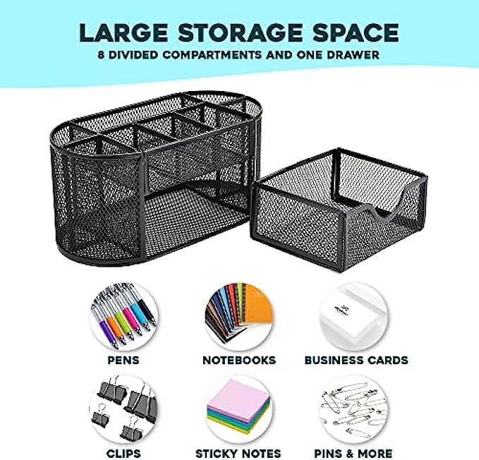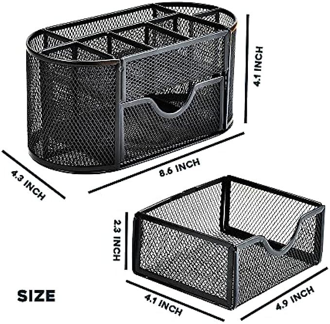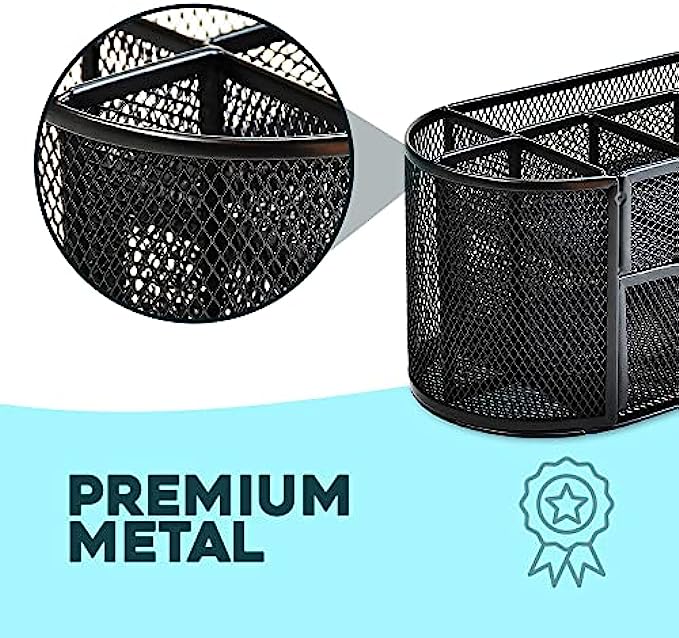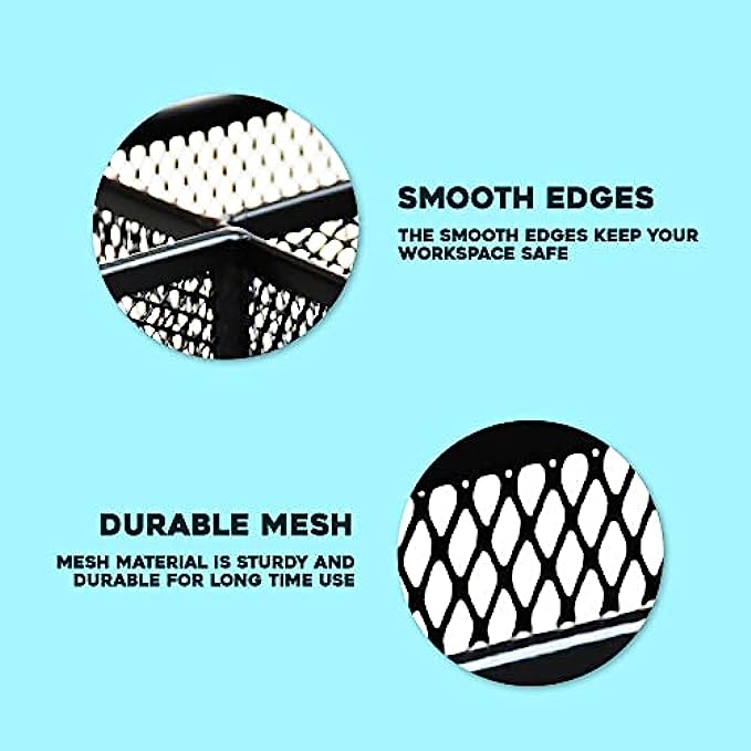 Premium Quality- This mesh desktop caddy is made of high-quality metal and features rounded edges for increased safety. There is a flat bottom to avoid scratching to your desk or other surfaces