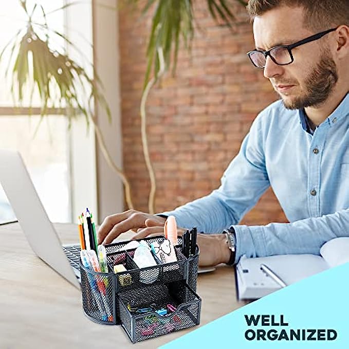 No More Clutter!- Nothing can be more counter productive than a messy workspace, eliminate the clutter with a multi-compartment desktop caddy perfect for easy organization