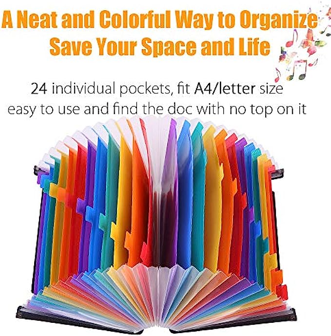 Large 24 Pockets File Folders: TriMigic file box will give you plenty of room to grow and add more things as needed, because this accordian file organizer has 24 individual pockets that fit A4 & letter size, and each pocket can expand across the bottom and top, the accordion file organizer can hold up to about 3500 sheets