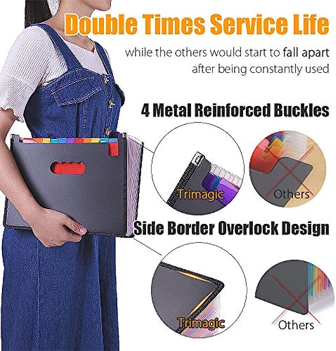 Double Times Service Life Document Organizer: the expandable binder organizer made from top-end 700D Polyester and PP, 4 metal protect reinforced buckle and side border overlock design, our sturdier structure will ensure longer service life, while the others would start to fall apart after being constantly used