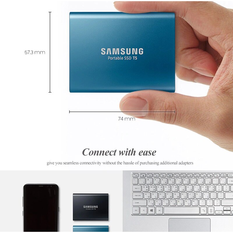 Hot sale ! Samsung T5 SSD 1TB 2TB External Solid State Disk Black USB 3.1 To Type-C Hard Drive Type-C To Type-C SSD For Computer