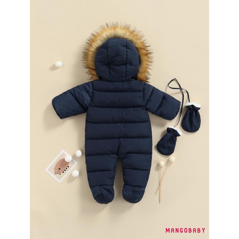 MG-Baby Girls Boys Zipper Down Jumpsuits with Gloves Winter Romper Jumpsuit Romper Outfits