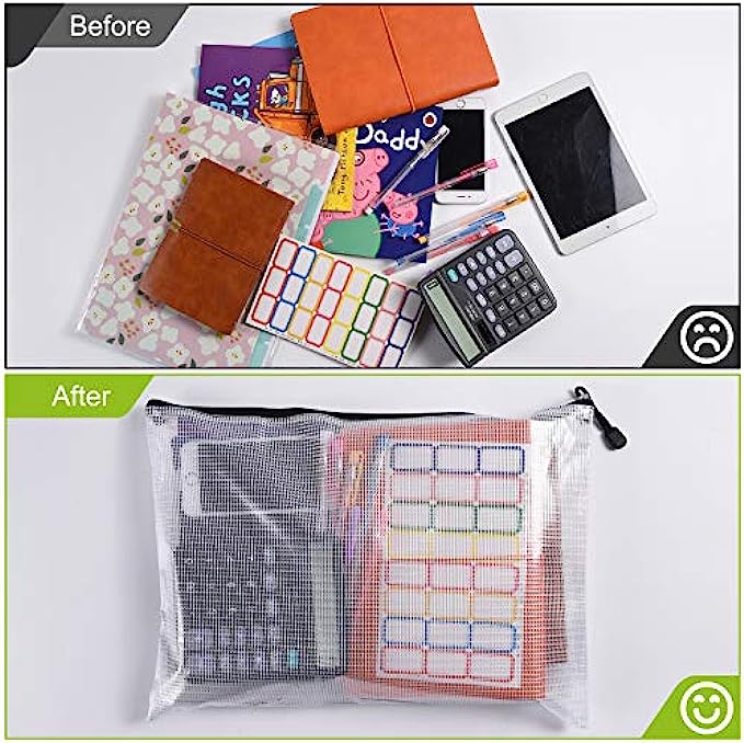 【Product Size】Size of the high quality mesh document bags with Zipper is 13.5" x 9.5"/34cm x 24cm. Which can be used to store some office supplies, like the documents, stationery, receipts, invoices etc., also can be used for home daily storage, like the jewelry, toys, diary and so on.