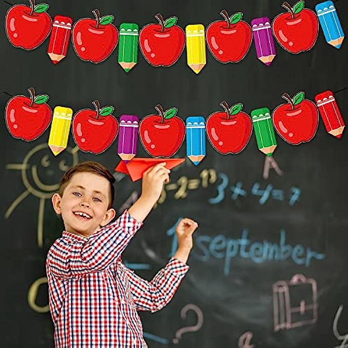 ✏️Materials and Size: The Pencil and Apple Banner set is is made from Grade A quality materials, so it is durable, sturdy and will very long lasting. Each card height approx is 6 inch. Perfect size is very suitable for photo background decorations.