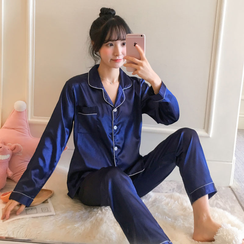 Ready Stock Plus Size M-5XL pajamas Suit Satin Long Sleeve pyjamas Baju Tidur Silk Sleepwear 2-piece set