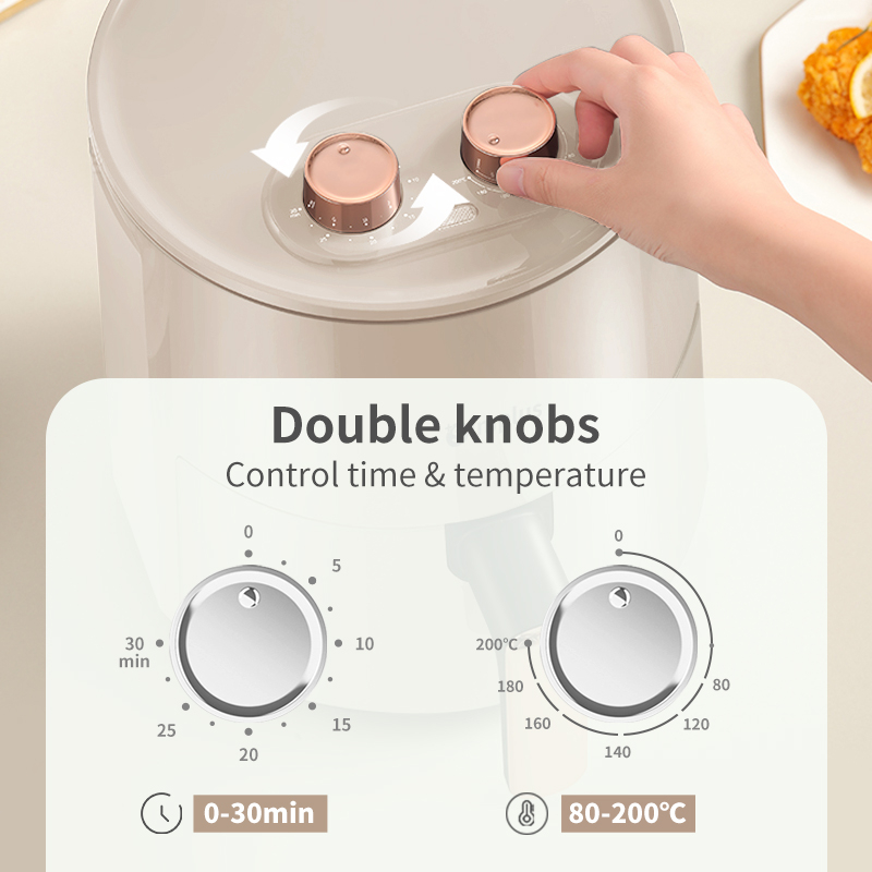 Simplus Air Fryer 4L Mini Knob Control 1300W 30min Preset Timer 80-200℃ Temperature Control