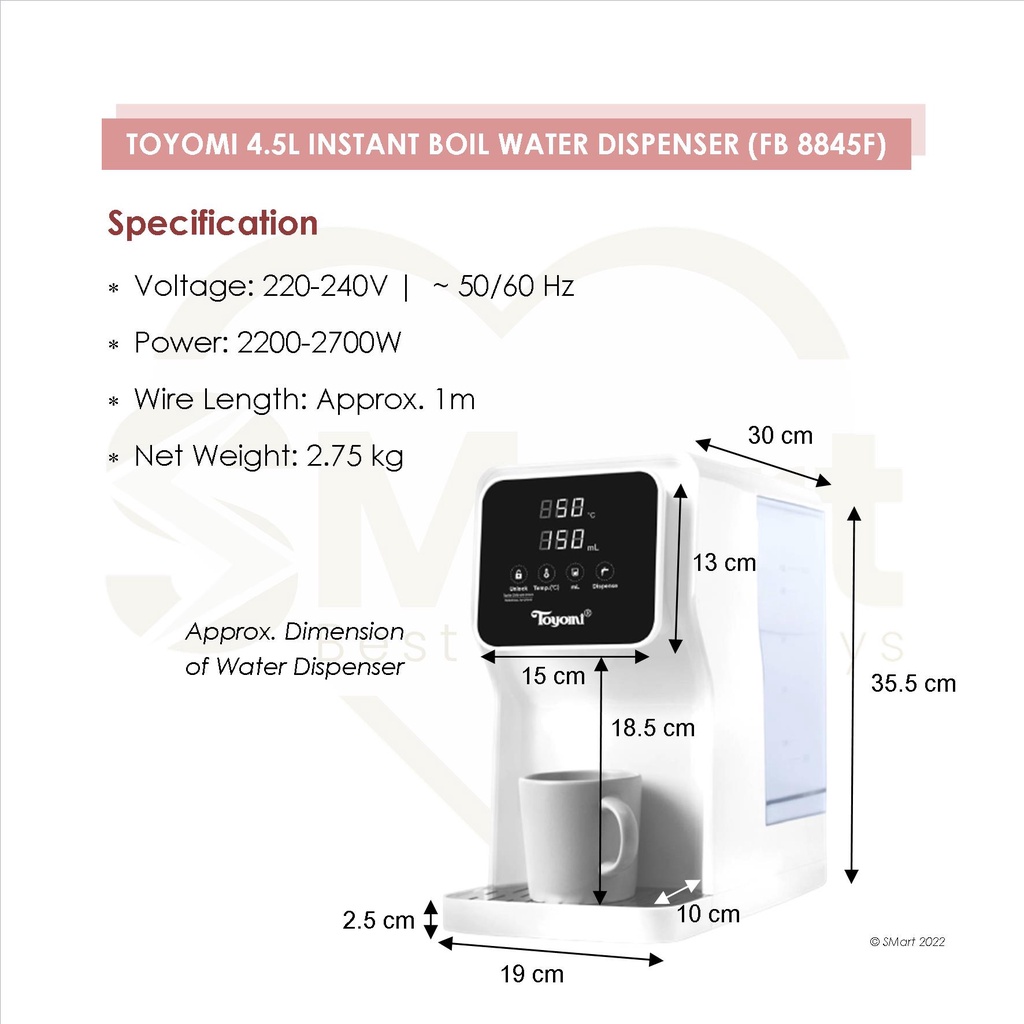 Toyomi 4.5L Instant Boil Filtered Water Dispenser [FB 8845F]