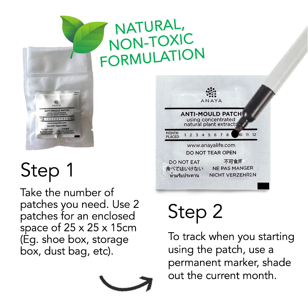 Material Quality:convenient packaging and effective result Fast delivery and I like how effective and easy to clean off the mouldy spots and make up stains on my bag. Can prevent mould without any harsh chemicals. The anti mould patch allow us to indicate which month we placed it. Very thoughtful packaging. Recommended?