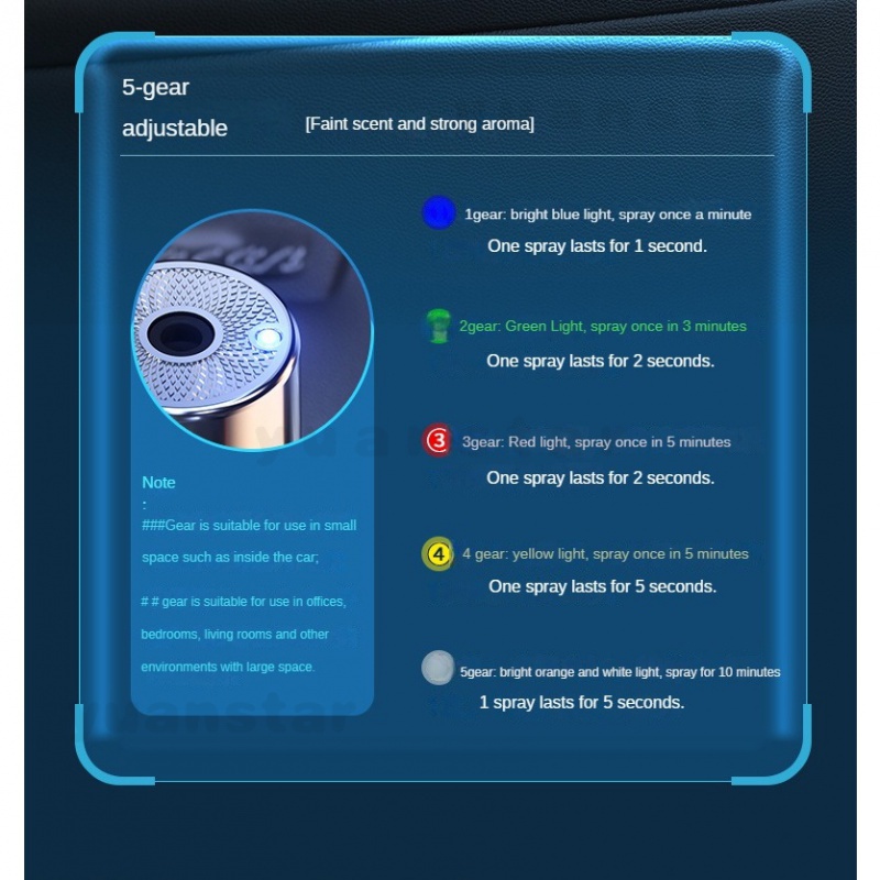 Suitability:It's give very pleasant smell. Appearance:Look Good. Quality:Perfect. Worth of buying the item smell good for the whole house.Highly Recommended . I bought to fragrance Ocean & HuQ. Pls take note you can select to press the button light timing to discharge the diffuser liquid.