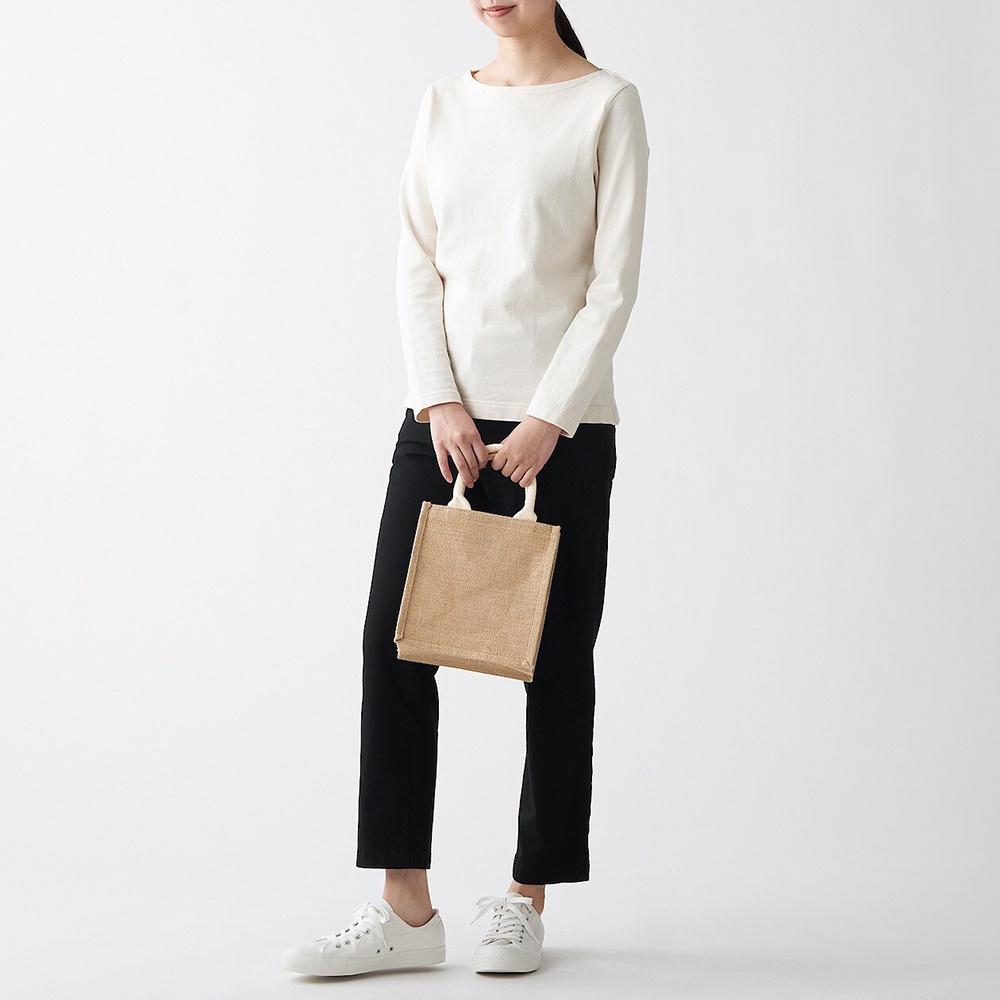 Material Quality:Excellent Colour:Good natural Love Muji jute bags for multi purpose. I used the EL size for beach, and storage, L size for work and laptop/ grocery shopping, M size for tote bag, and S size for casual walk to carry mobile phone, purse and water bottle. I used them for my decoupage projects too.