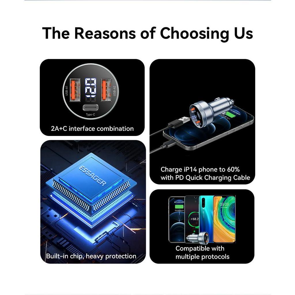 Appearance:premium look Quality:Excellent Suitability:2X USB 1X USB-C Nice car adapter for multi USB charging. Come with digital indicator which I never thought of this feature on the small device. Tried on the USB it works fine but yet to try on full plugs in. Overall the touch quality and built is excellent and worth the price.