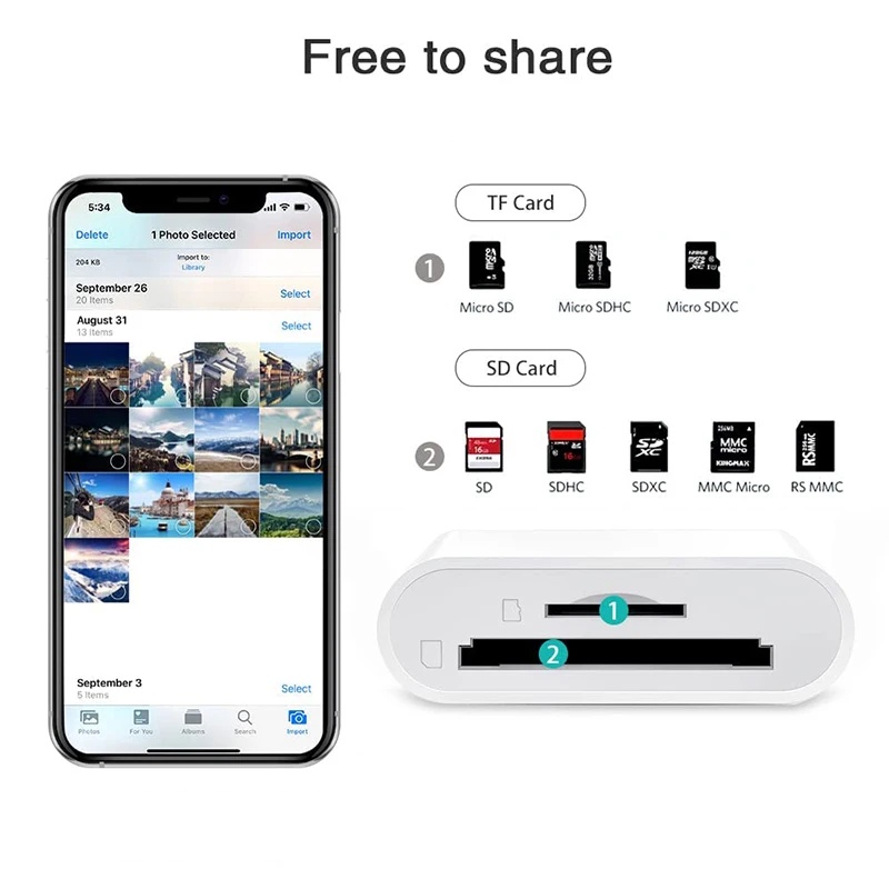 Performance:good Reader works finely fine. Gam with my ip12. Happy to transfer images from the memory card. Delivery is also fast wlpn from china. Thanks