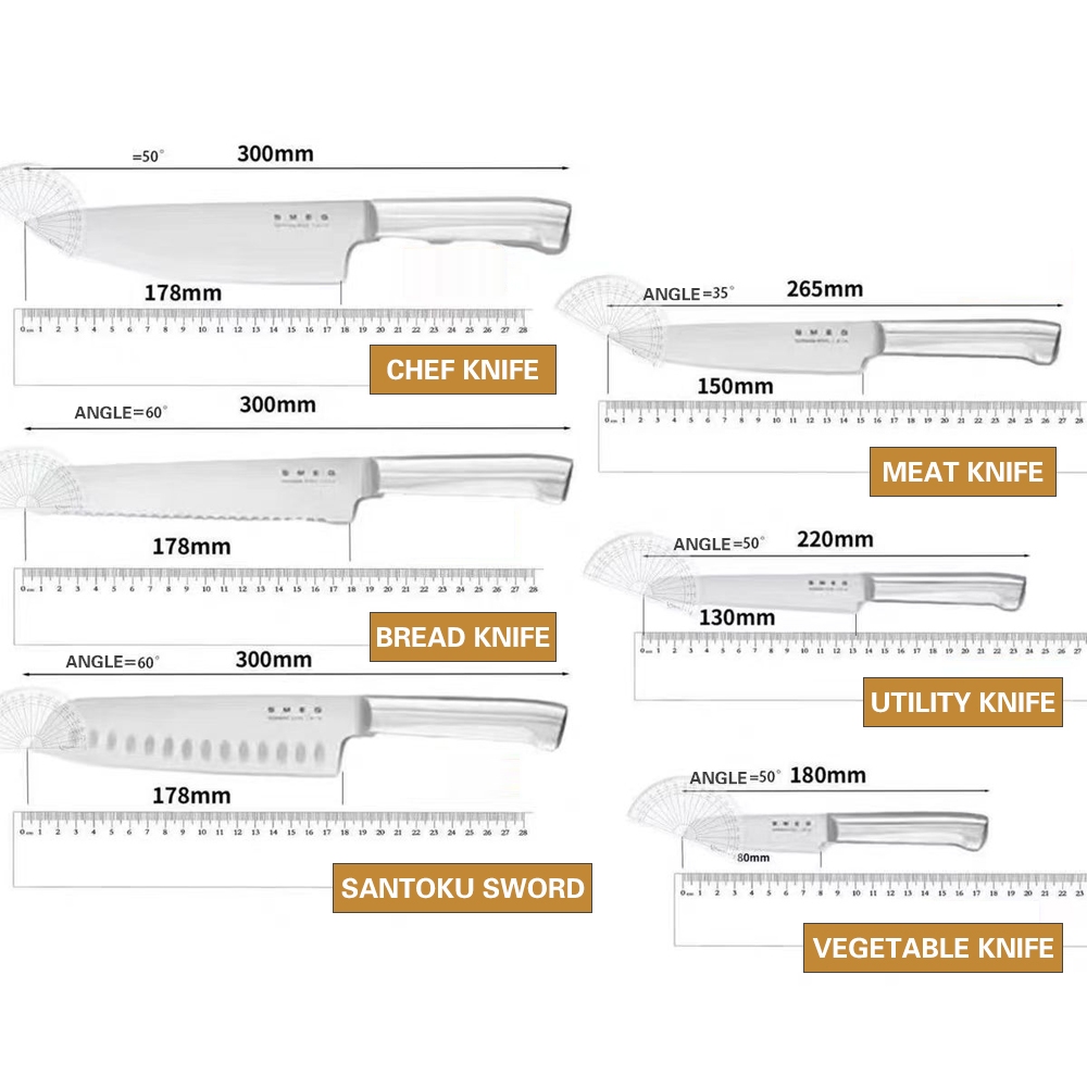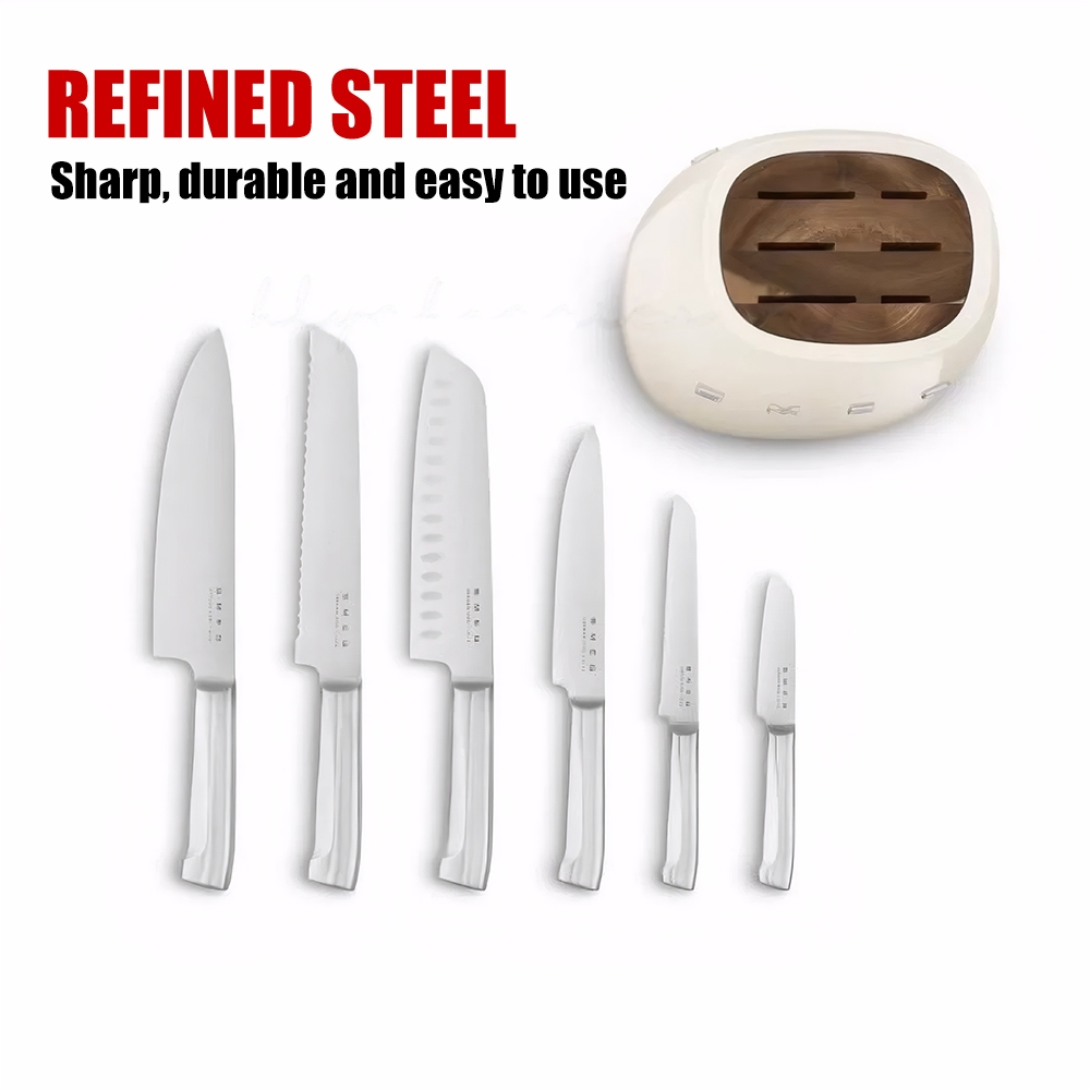 Quality:excellent Appearance:aesthetic Performance:excellent The set came properly packed. The knives are very sharp. Love the wood look on the top. The set completes my kitchen look. Am looking to get other Smeg items to add on to my collection. Wonder if they also sell waffles maker or kettle. Will be awesome to get in black.