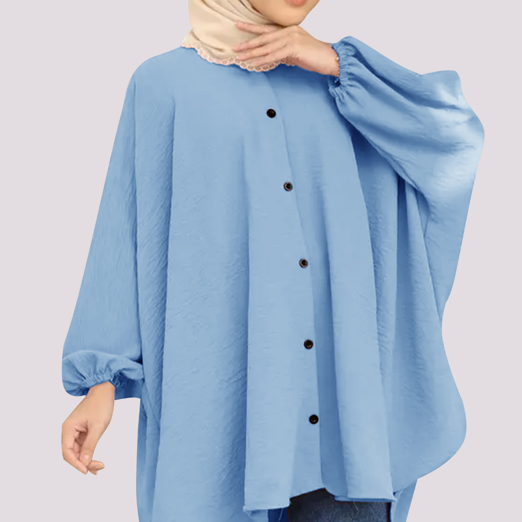 Received the delivery of Korean Style Women Long Friendly Sleeve Blouse Italian Crepe Viral Shirt Baggy Top Blouse Viral / Free Size promptly. Material is cooling and quality is good. Really comfortable to wear and suitable for hijabis. I will definitely buy other colors soon. Thank you seller.