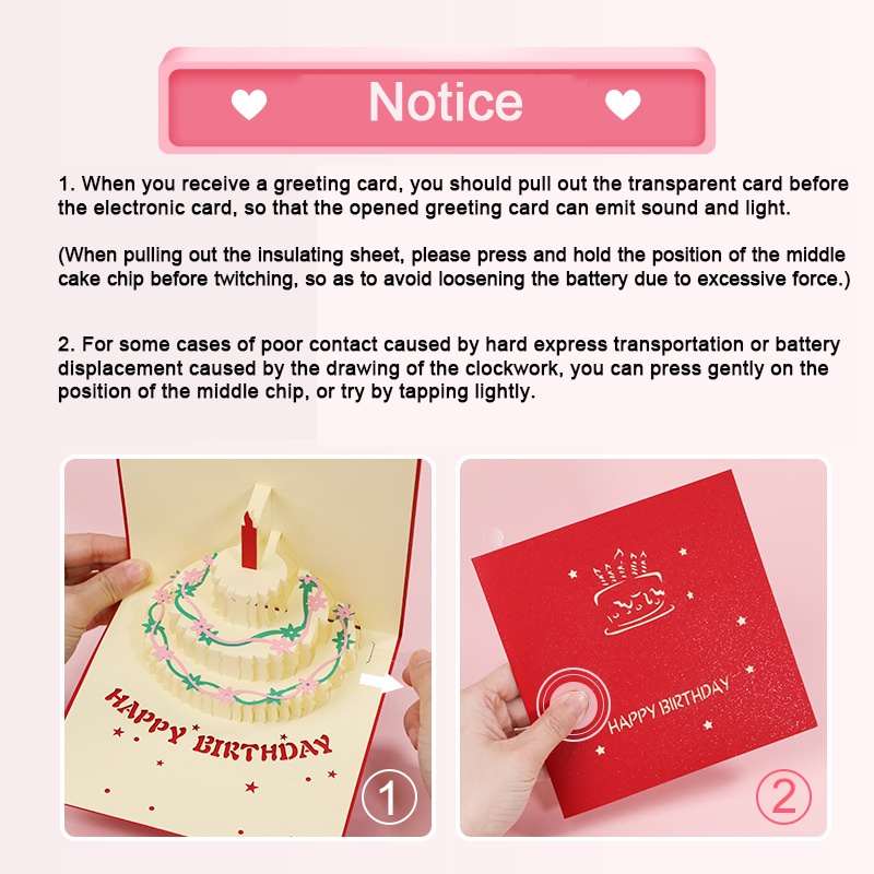 Music Birthday Card Pop Up 3D Cake Musical Light Greeting Card (Include Music Light And No Music Light) Creative Birthday Party Gift Message Card