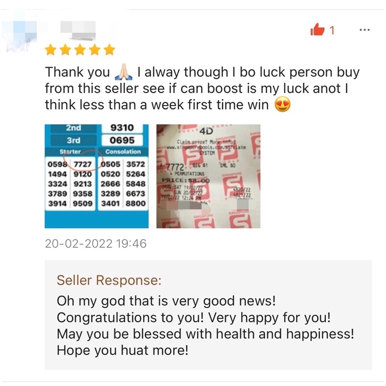 Suitability:Good luck Quality:Very good quality Fast delivery and received in good condition. Used shopee voucher and coins and quite reasonable price. I give my wife used it, this few months she strikes lottery a few times. Recommend it. Thank you seller for the free gifts.