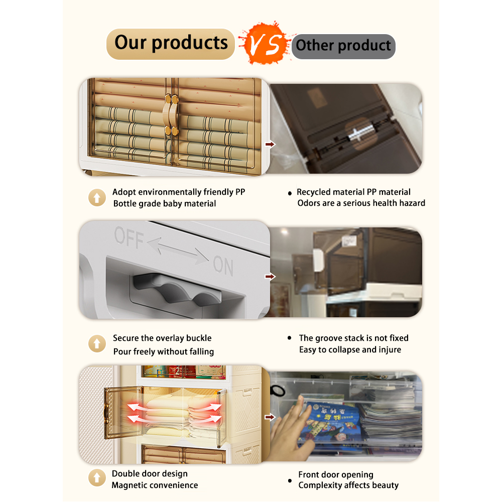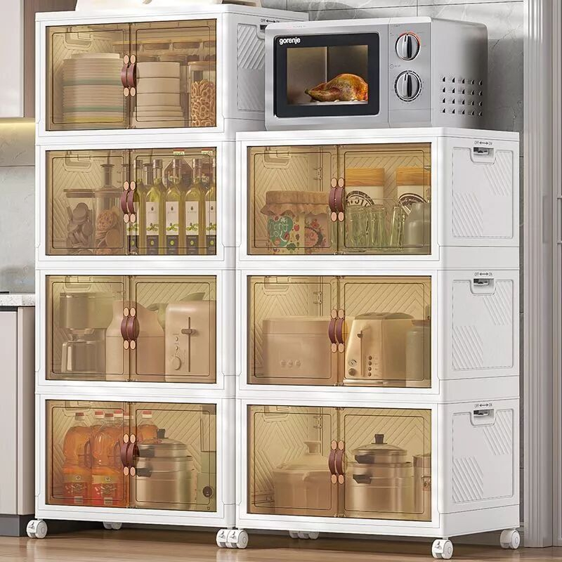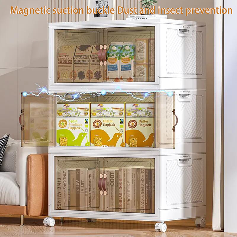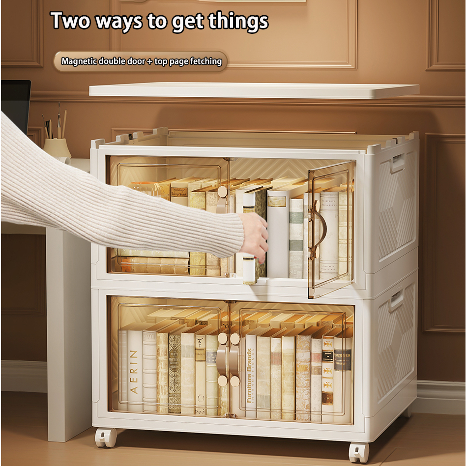 【SG Stock】Folding Storage Box Cupboards Cabinets Transparent Double Door Foldable Home Clothes Snacks Storage Cabinet