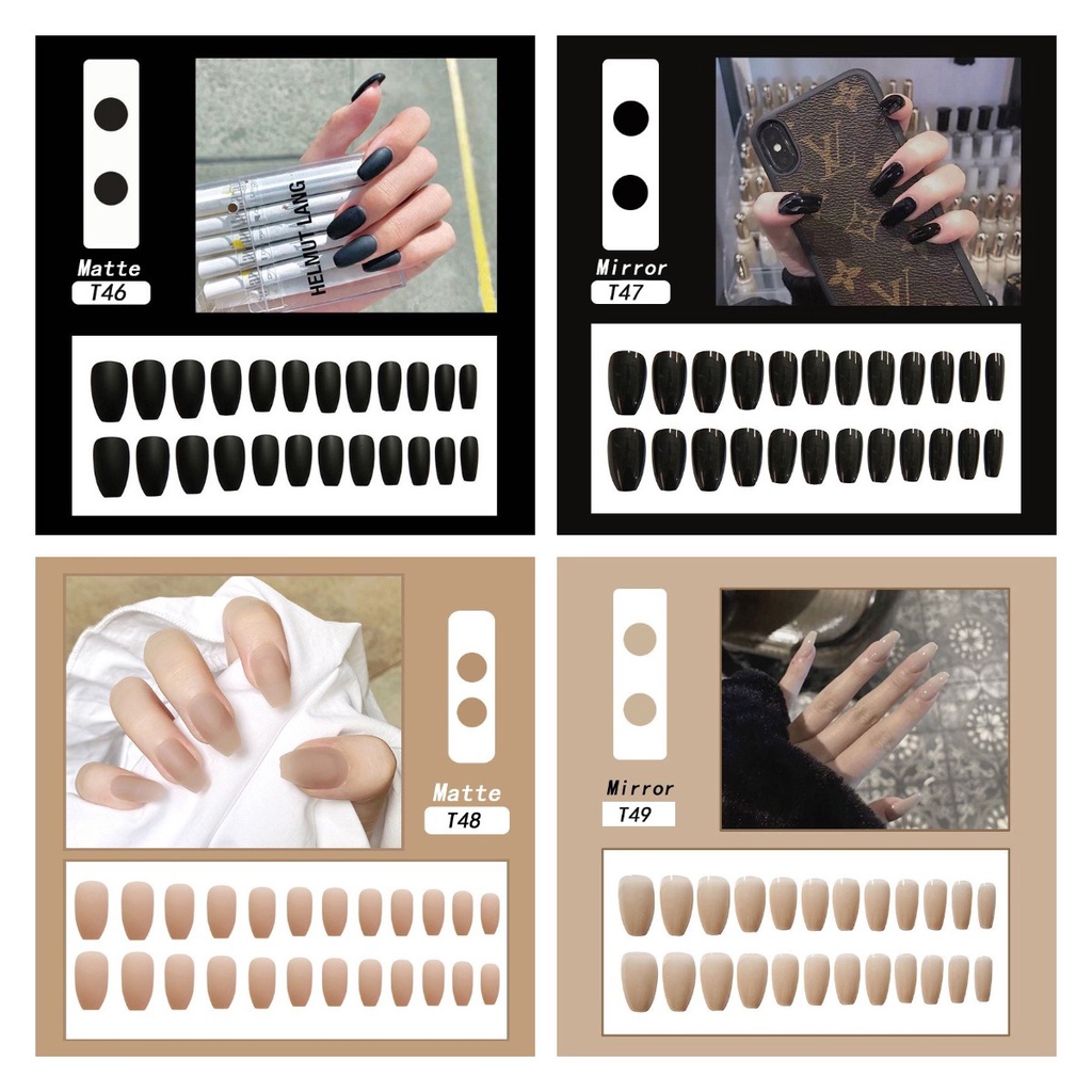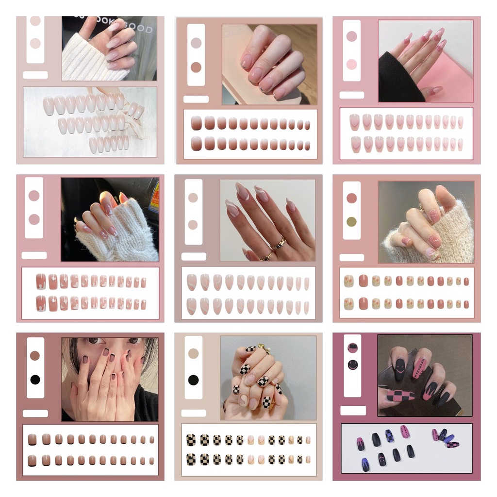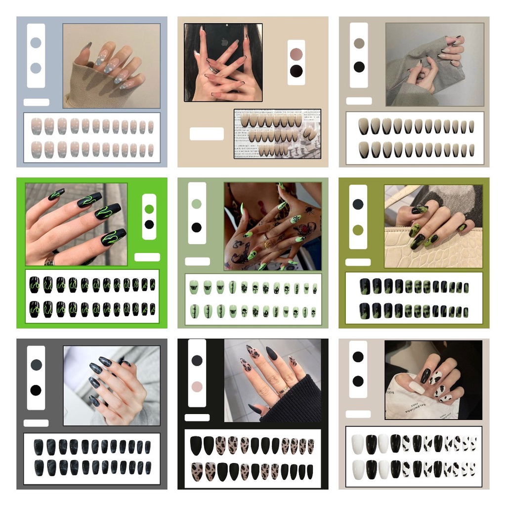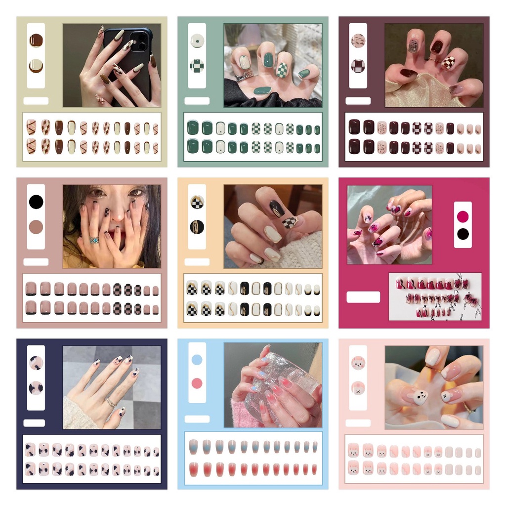 with 24 Pcs Sticker Glue 24Pcs Press On Nails Nail Art Patch Fake Nails Flase Nails Waterproof Detachable Nail Patch